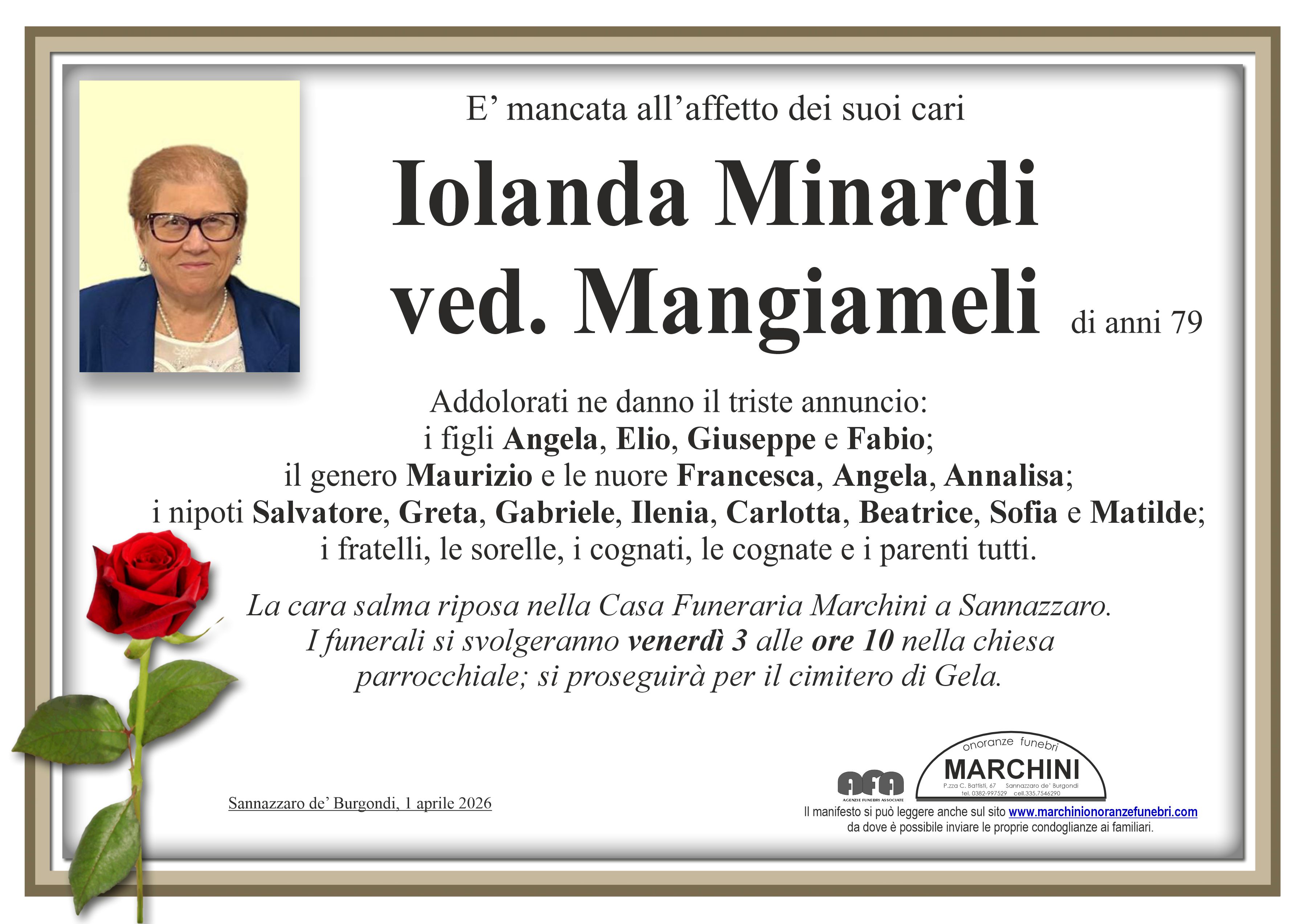 Home page \ I necrologi \ IOLANDA MINARDI