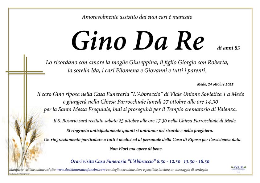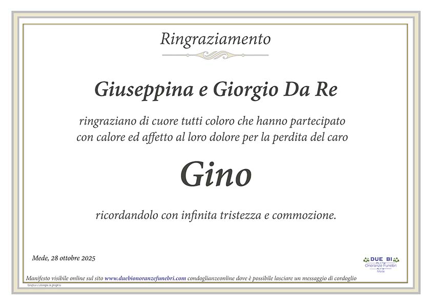 Home page \ I necrologi \ Gino Da Re